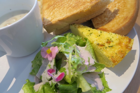 這樣一份蠻豐盛了,除了熱煎三明治外還有烘蛋、濃湯、薯塊跟沙拉